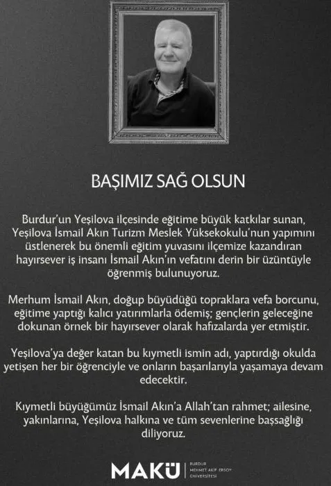 Acı Kaybımız: Hayırsever iş insanı İsmail Akın'ı Kaybettik.